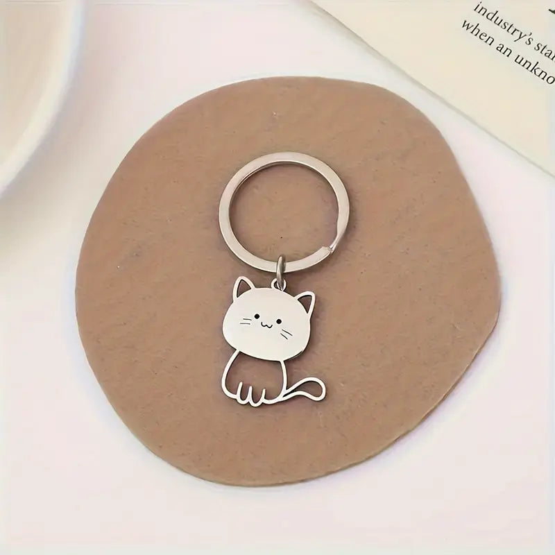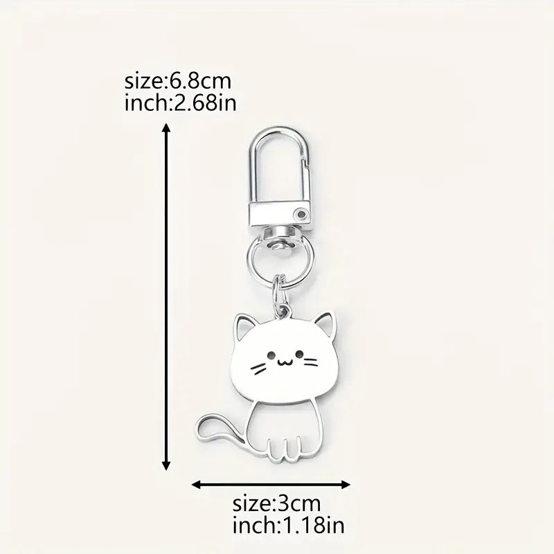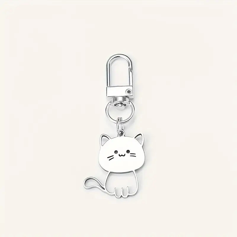 "Add a touch of charm to your keys or bag with this cute cat-shaped metal keychain. Made from durable alloy with a polished silver finish, it features an adorable cat design that’s perfect for cat lovers. Lightweight, stylish, and practical – a lovely accessory or gift."
